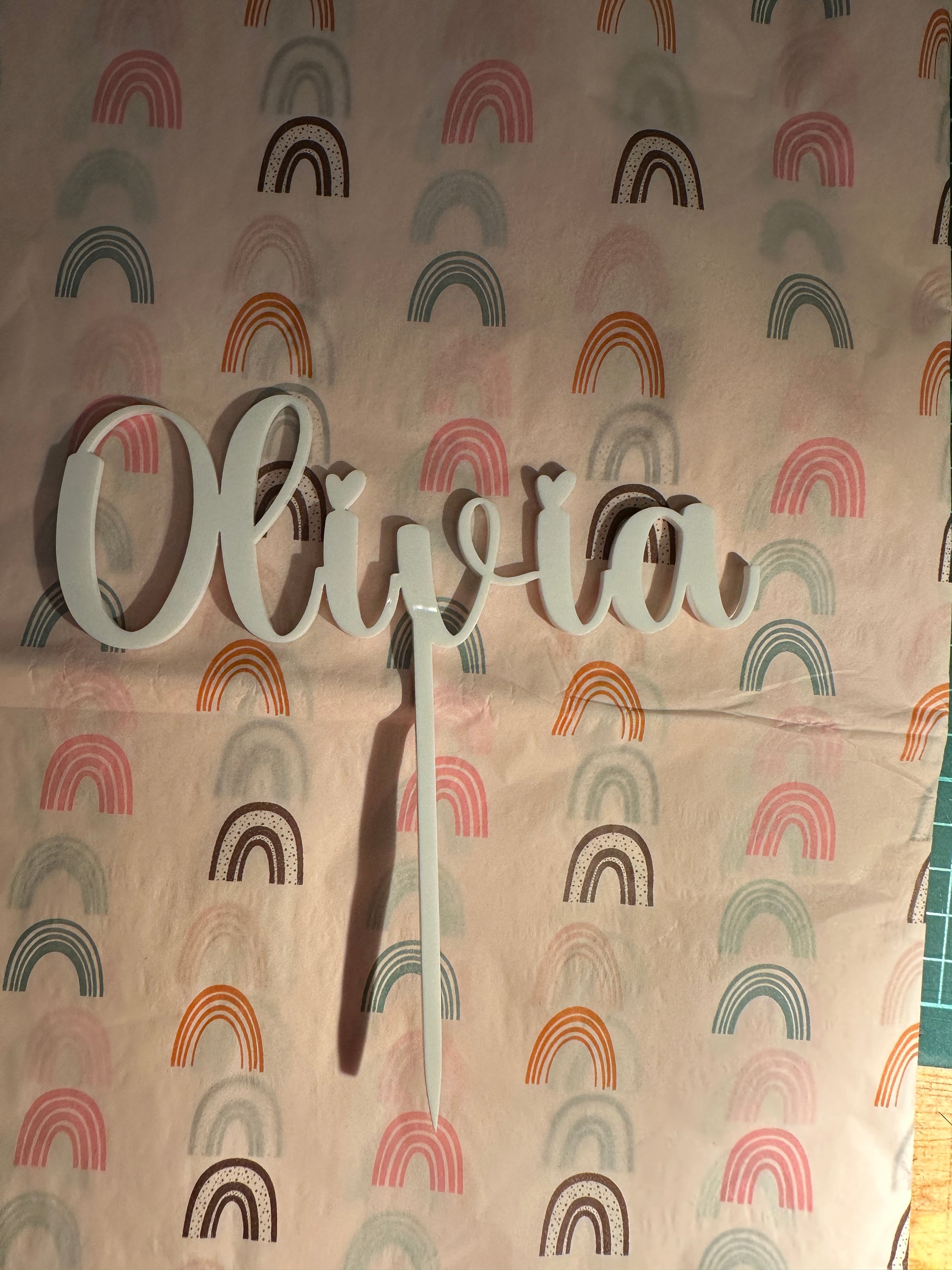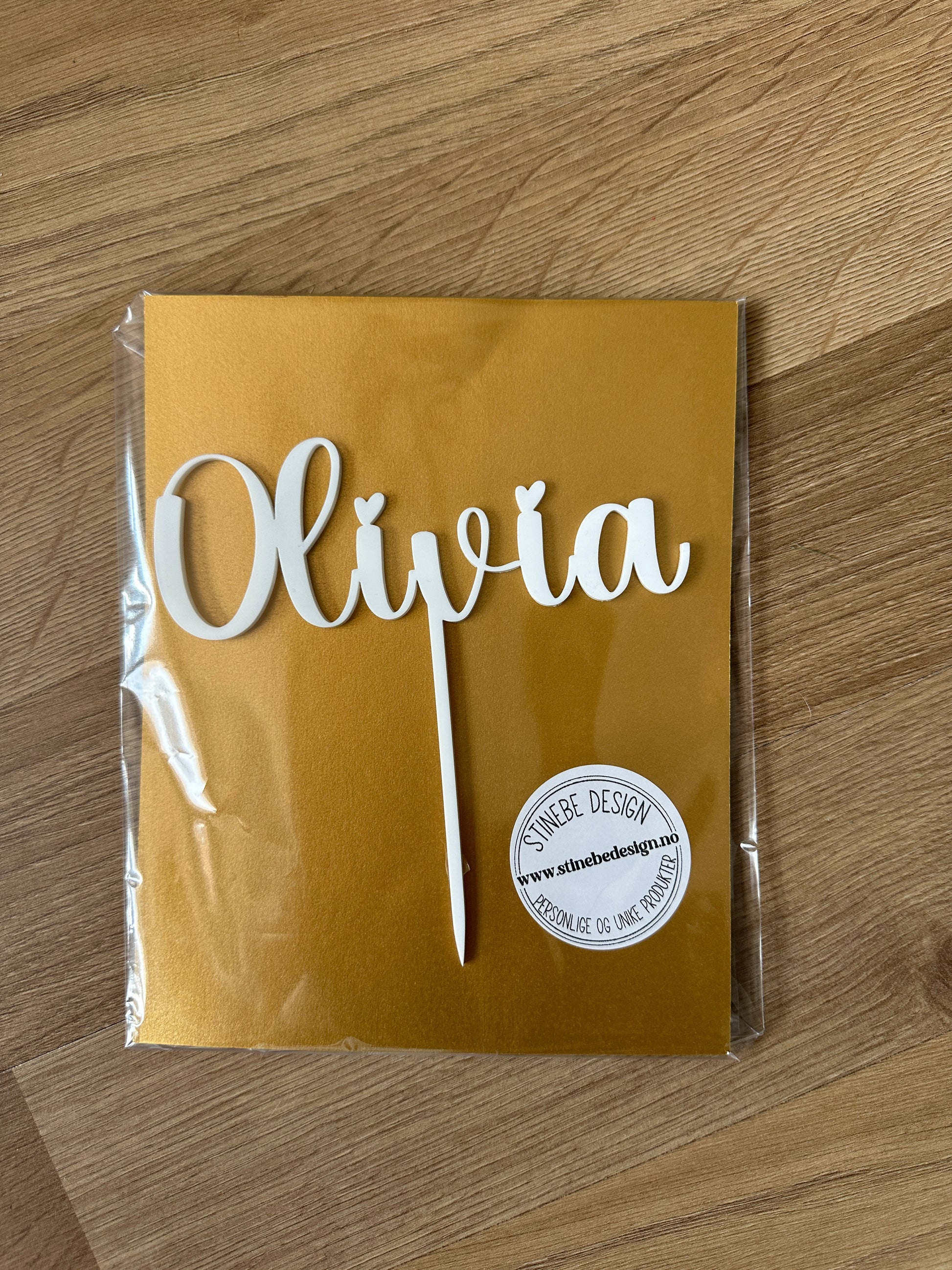 Kaketopper med navn. Velg mellom tre eller akryl.