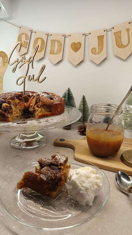 Gjør julebaksten ekstra spesiell med denne elegante kaketopperen med teksten God Jul. Topperen er laget i et stilrent design som gir kaken et luksuriøst og festlig preg. Velg mellom bjørkefiner eller gull speilakryl.