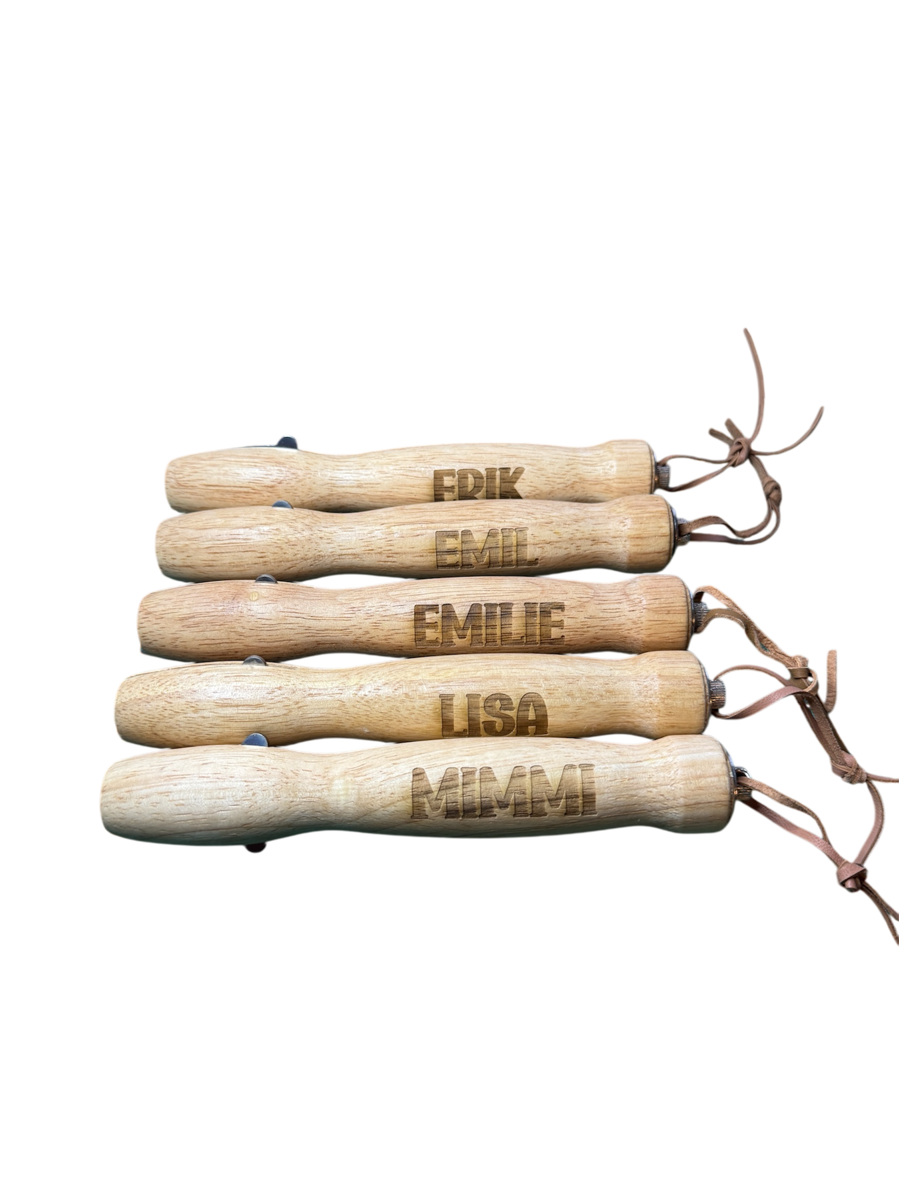 Grillpinne i tre med gravert navn – personlig, praktisk og perfekt for tur!