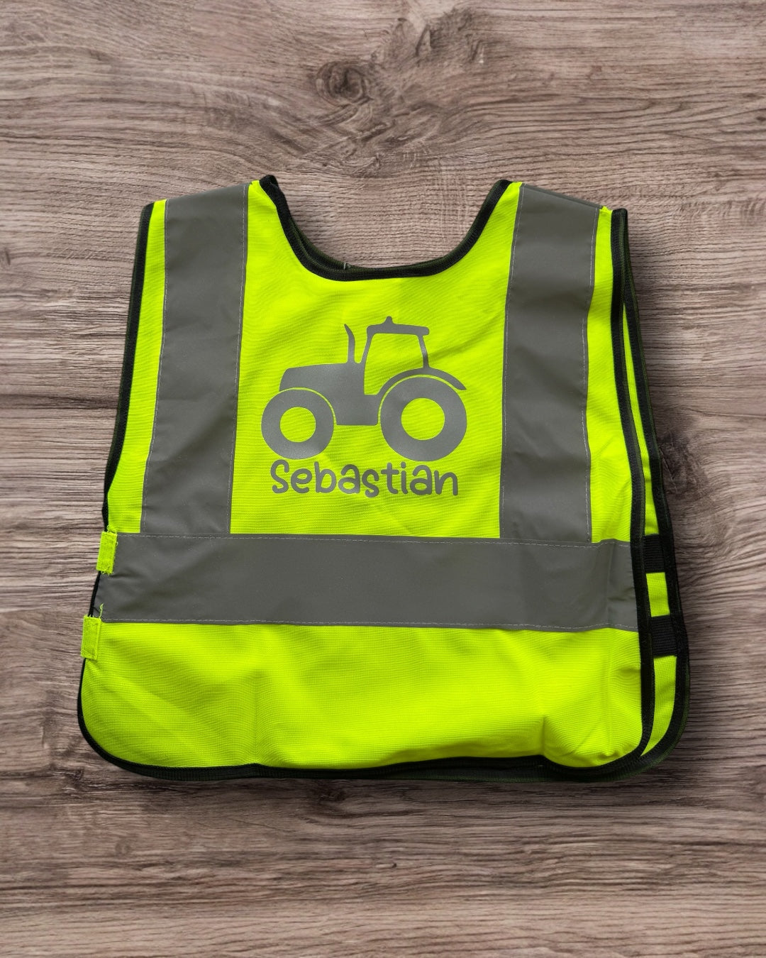Refleksvest til barn – med navn og figur i reflekstrykk